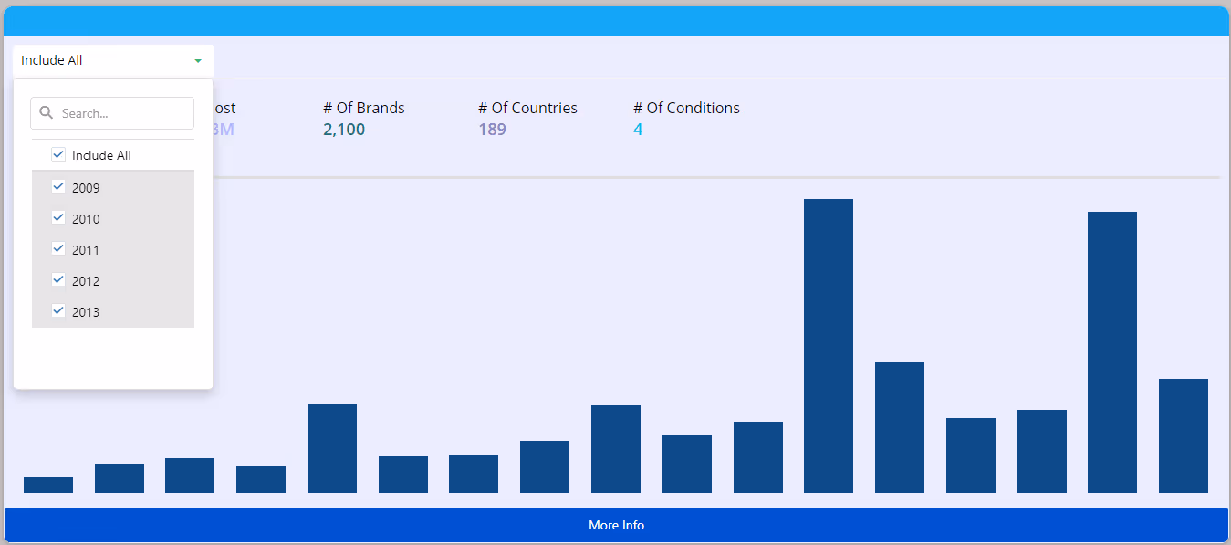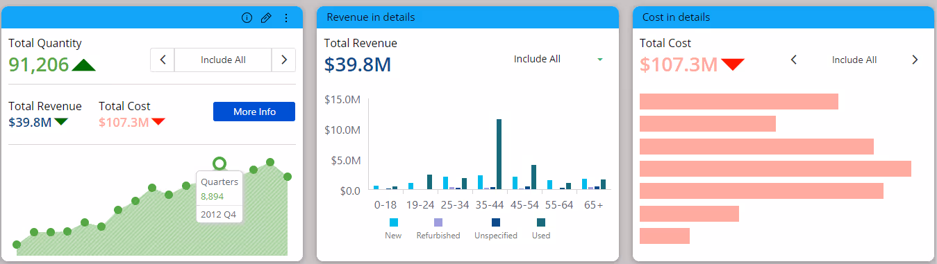 With countless available templates, design options, multiple sparkline choices, in-widget filtering, and in-widget jump-to-dashboard features, it provides you with extensive analytical capabilities while optimizing your limited dashboard space, all without requiring a single line of code.